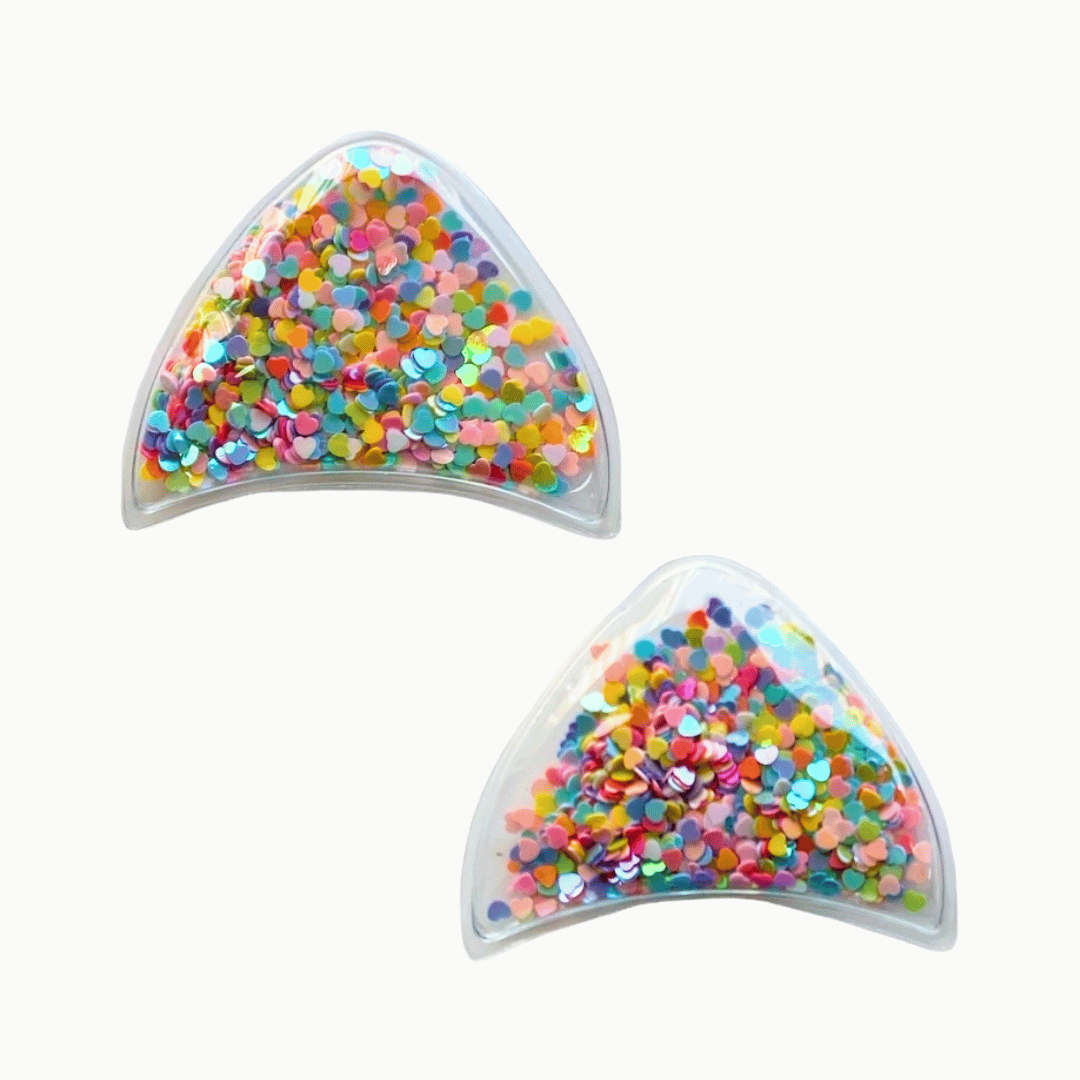 Produzido em plástico resistente, leve e com acabamento brilhante, o aplique traz o formato de orelhinhas de gatinho decoradas com pequenos corações, trazendo charme e delicadeza. É perfeito para tiaras, presilhas, acessórios infantis, lembrancinhas e personalizações que pedem um visual mais divertido e apaixonante.