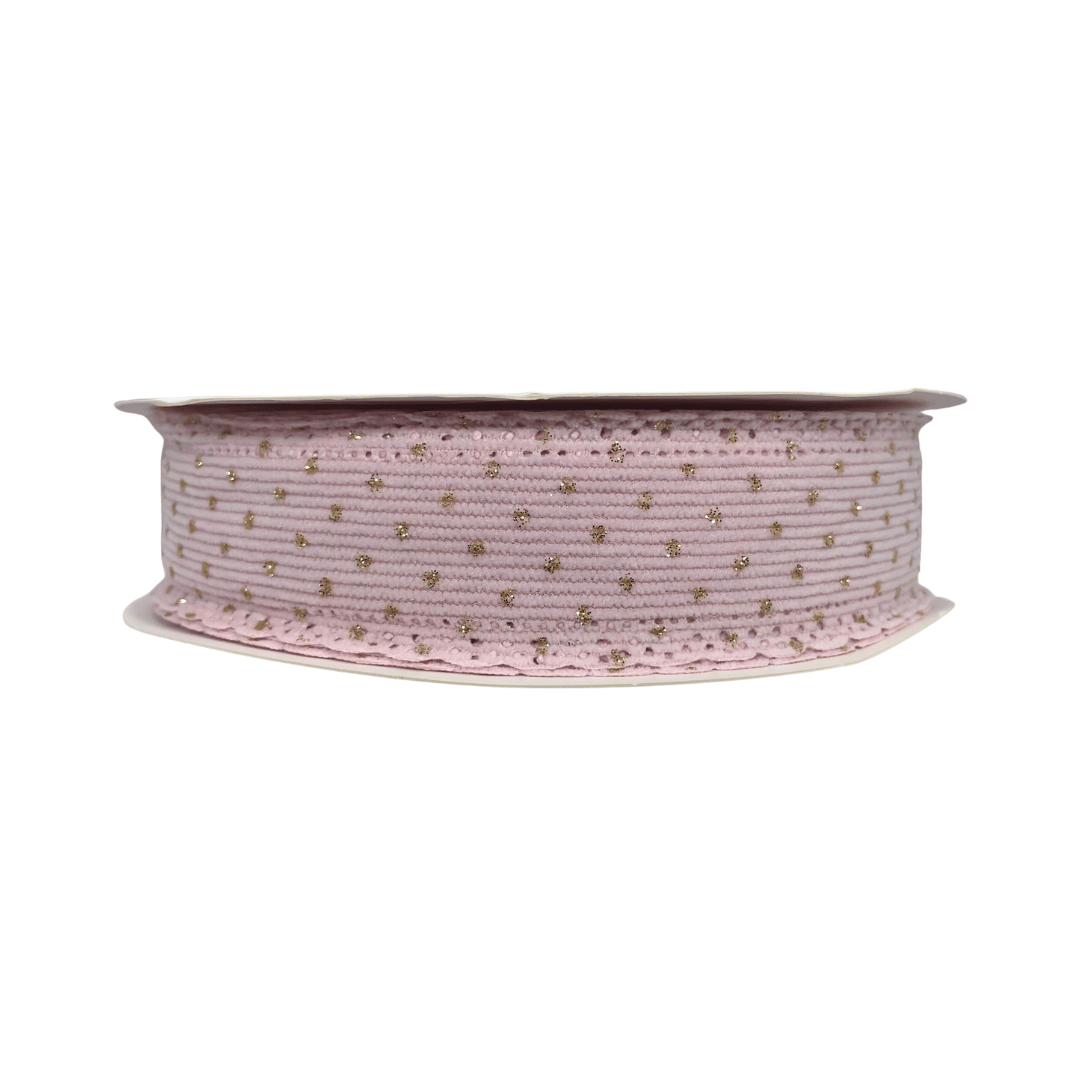 Fita Cotelê Com Poá Dourado e Borda Trabalhada 38mm | Metro | Cor: Rosa Bebê