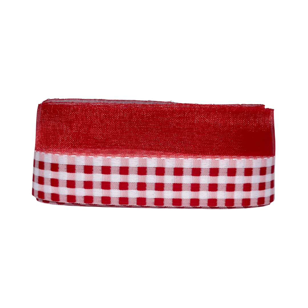 Fita Quadriculada Com Organza 38mm | Metro | Cor: Vermelho